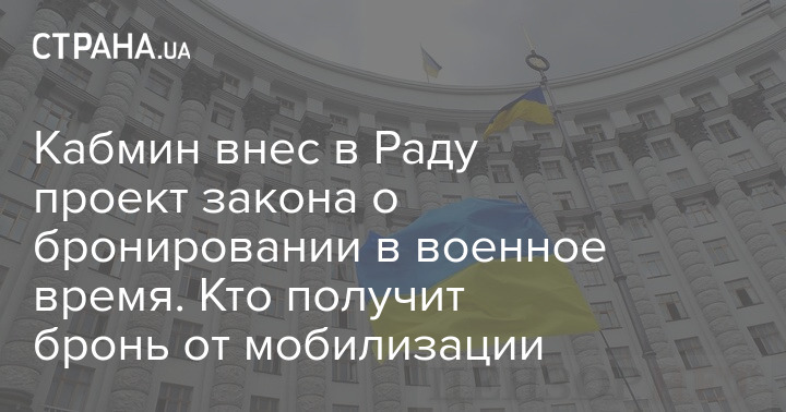 Кабинет министров внес в Верховную Раду проект закона о бронировании военнообязанных в период мобилизации.