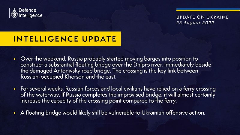 РФ перебрасывает баржи для строительства прочного наплавного моста вместо Антоновского - разведка Британии