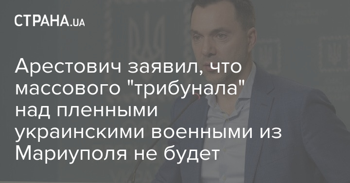 Советник главы Офиса президента Украины Алексей Арестович считает, что массового "трибунала" над пленными украинскими военными из Мариуполя, который в "ДНР" ранее хотели провести до конца лета, не будет.