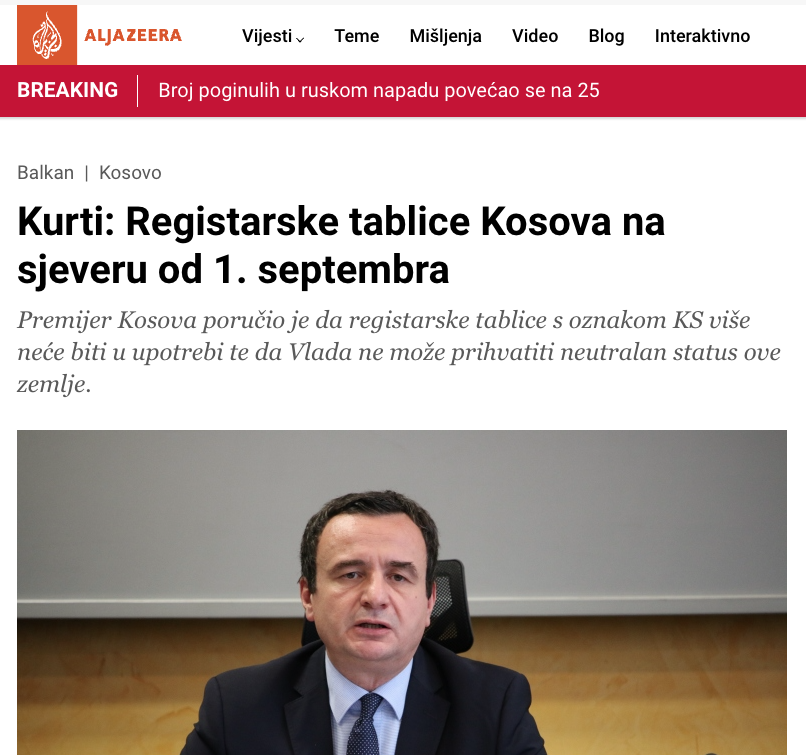 Премьер Курти снова поднял тему сербских номеров, которая приводит к напряженности в регионе