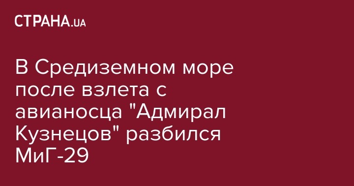 Российский истребитель МиГ-29 после взлета с авианесущего крейсера "Адмирал Кузнецов" разбился в Средиземном море. Об этом сообщает Fox News со ссылкой на собственный источник в американской разведке.
