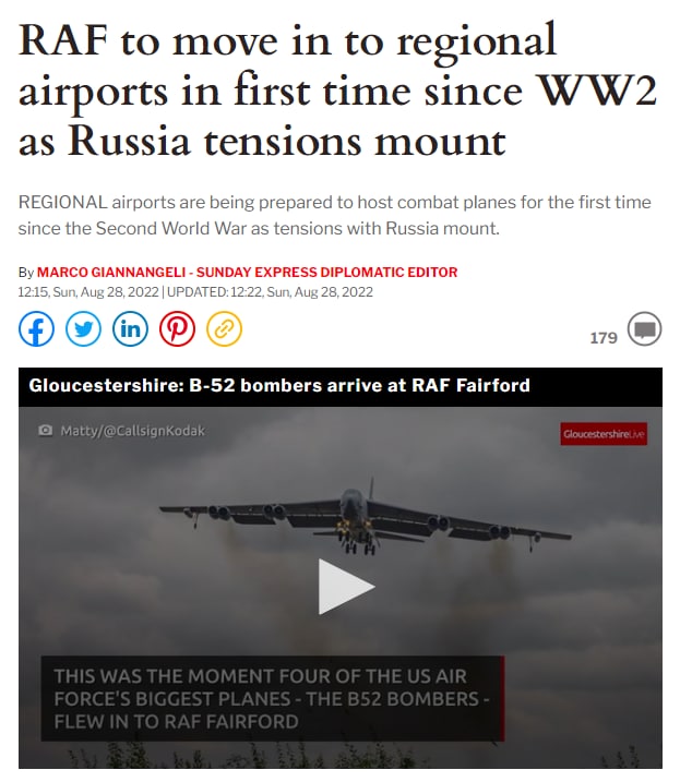 11:23 Истребители королевских военно-воздушных сил Великобритании перебазируются в гражданские аэропорты в связи с усилением напряженности в отношениях с РФ. На такой шаг страна идет впервые со времен Второй мировой войны, пишет Daily Express.