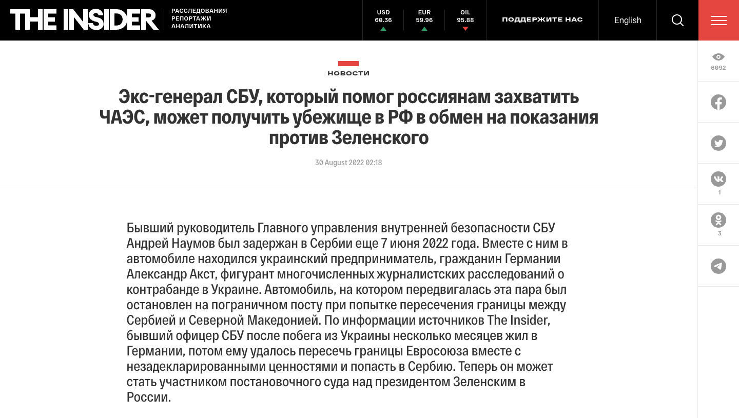Наумов уехал из Украины накануне начала войны - за считанные часы до вторжения. Против него расследуется дело по статье "государственная измена". Как выяснили журналисты, 23 февраля, перед началом вторжения, Наумов в сопровождении нескольких человек покинул Украину. Его семья уехала раньше.