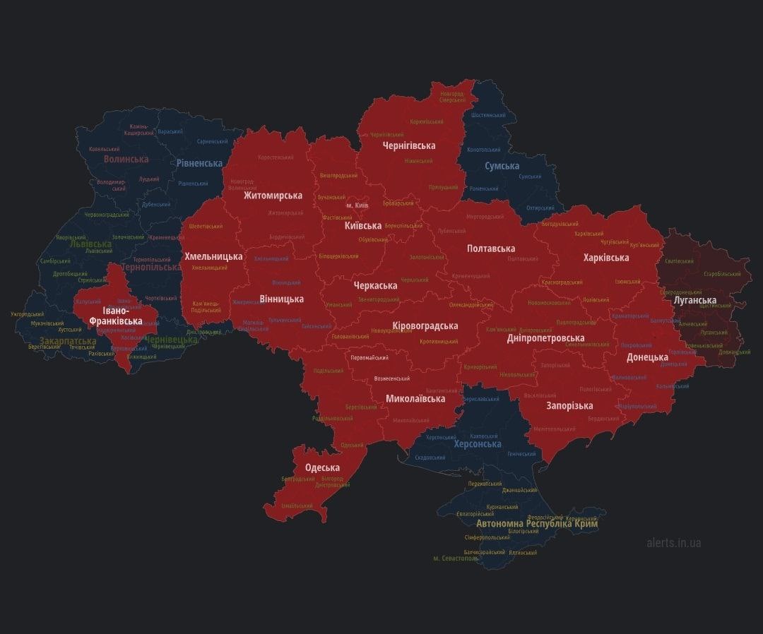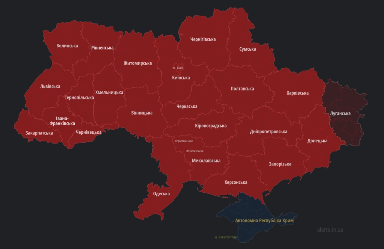 12:04 Воздушная тревога объявлена по всей территории Украины, кроме Крыма.