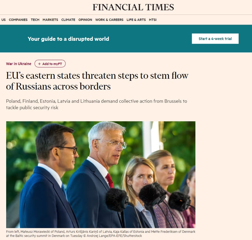19.57 Польша, Эстония, Литва и Латвия намерены принять ряд мер, чтобы сократить число граждан РФ, въезжающих на территорию этих стран и на территорию Шенгенской зоны.