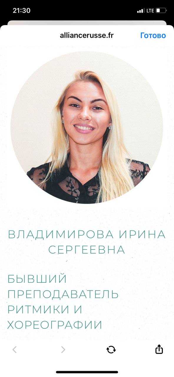 При этом биография танцовщицы общедоступна в интернете. Как сказано в открытых источниках, Ирина Владимирова родилась в Чебоксарах и является мастером спорта по бальным танцам. Она преподавала ритмику и хореографию в Санкт-Петербурге. Последние годы жила и работала во Франции и других странах Европы.