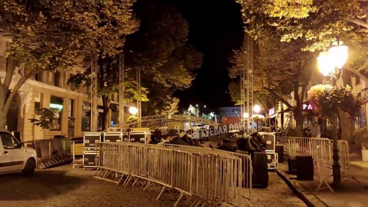 Несмотря на периодические обстрелы Одессы, на Дерибасовской улице решили установить сцену и устроить 2 сентября небольшой концерт в честь дня города.