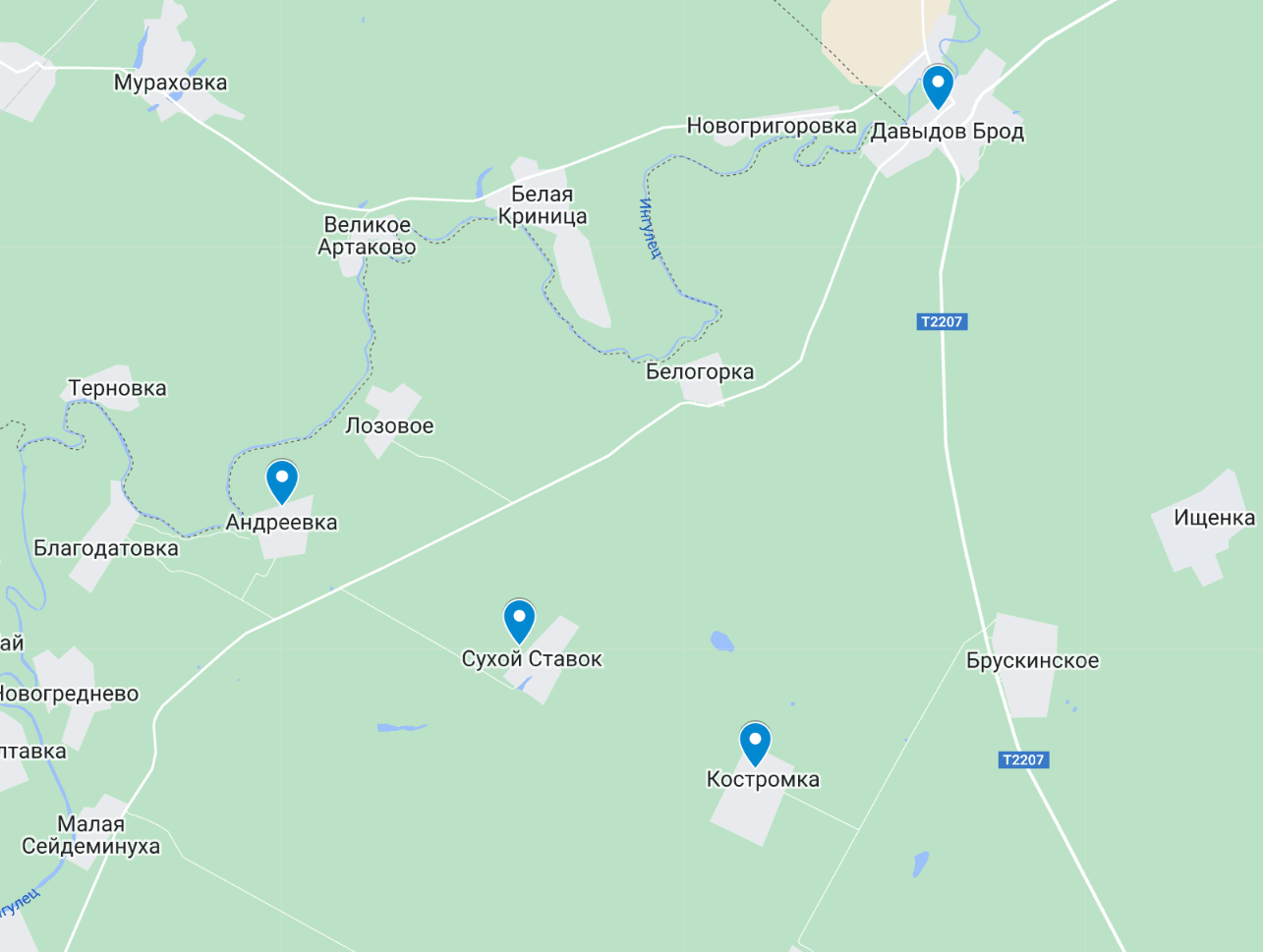 Под Давыдовым Бродом, как сообщается, украинские силы сосредоточились на участке Андреевка - Сухой Ставок. От Андреевки идет переброска сил в сторону трассы Давыдов Брод - Берислав, которую ВСУ явно хотят перерезать.