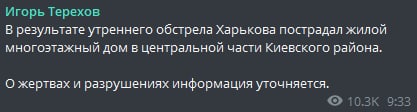 Об этом сообщил мэр Харькова Игорь Терехов в Телеграм.