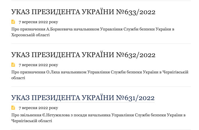 Президент Владимир Зеленский назначил новых руководителей областных управлений СБУ в Херсоне и Чернигове.