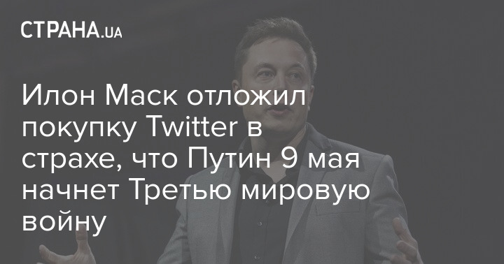 Американский бизнесмен Илон Маск отказался от покупки социальной сети Twitter из-за предстоящей речи Владимира Путина по случаю Дня победы 9 мая, чтобы убедиться, "не движемся ли мы к Третьей мировой войне".