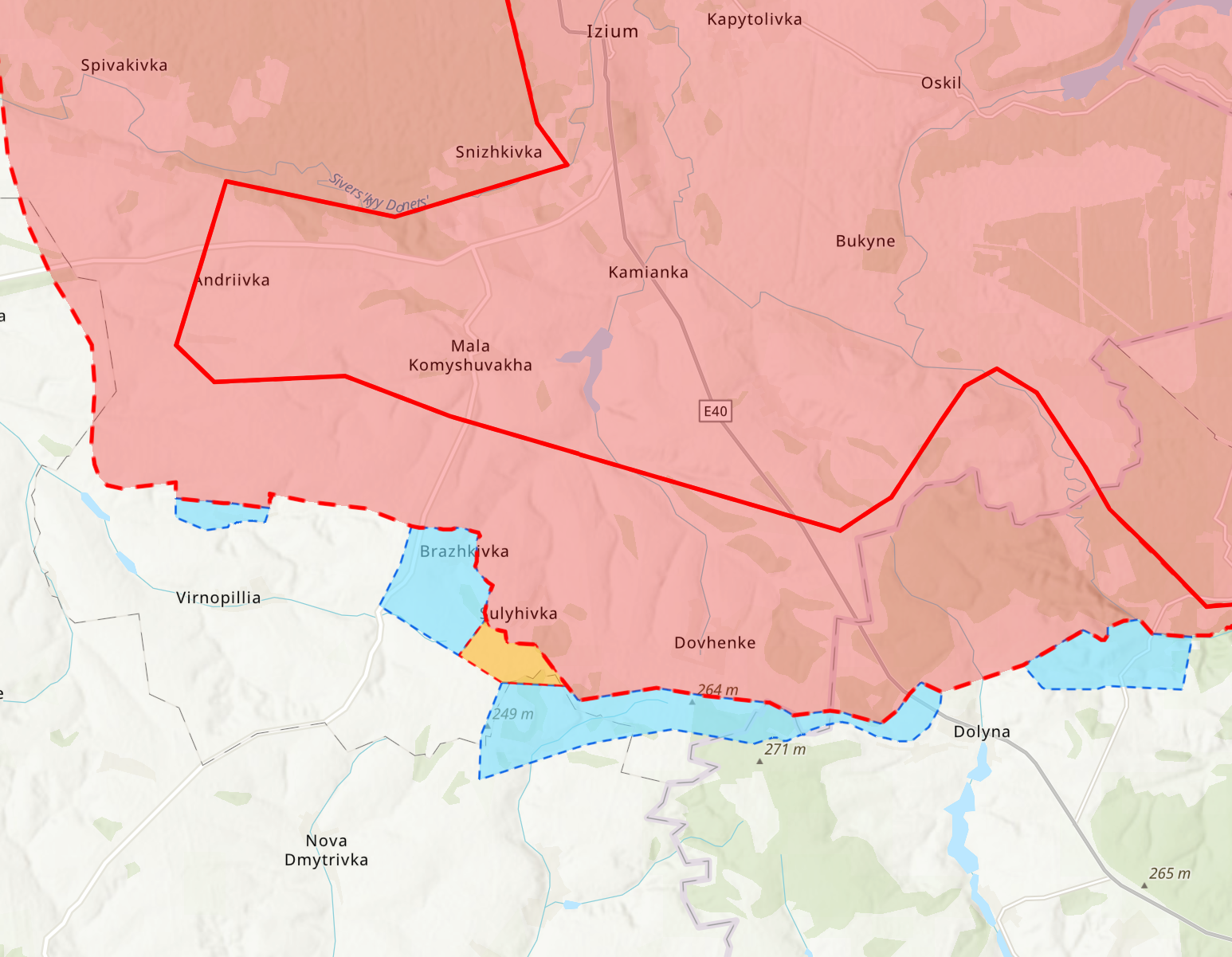 Отдельные российские телеграм-каналы пишут, что идут контратаки россиян в районах сел Синиха-Сеньково-Воронцовка-Федоровка-Лесная Стенка. Также пишут о наступлении ВСУ на Гороховатку, где расположен ближайший к Изюму мост через Оскол (пишут, что был контрудар РФ с восточного берега из Боровой).