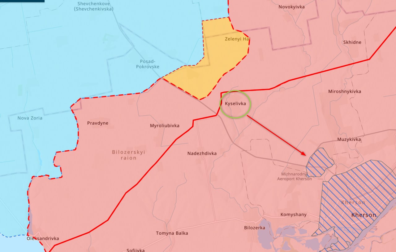 Институт изучения войны пишет о том, что российские войска выходят из Киселевки на северо-западе Херсонской области.