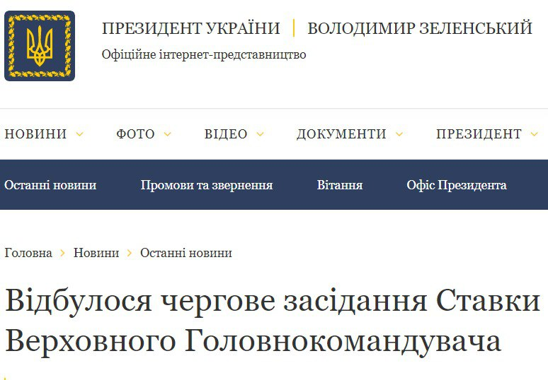 Президент Украины Владимир Зеленский провел заседание Ставки верховного главнокомандующего, где заслушал доклады командующих войсками оперативных направлений.