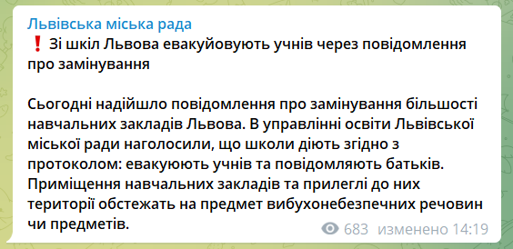 В школах Львова проходит массовая эвакуация. В мэрии объяснили, что произошло