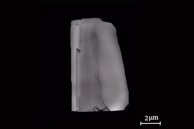 Обнаруженный исследователями минерал — это кристалл размером 10 на 7 на 4 микрометра. Но, несмотря на крохотный размер, ученым удалось определить атомную структуру кристалла и доказать, что он может быть представителем нового вида минералов. "Синьхуа" сопровождает свое сообщение изображением кристалла, сделанным на сканирующем электронном микроскопе.
