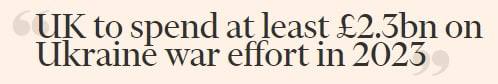 10:35 Британия намерена выделить Украине в качестве военной помощи в следующем году не меньше 2,3 миллиарда фунтов стерлингов (около 2,6 млрд долларов), пишет газета Financial Times.