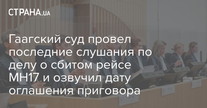 В судебном комплексе "Схипхол" в Нидерландах сегодня состоялось последнее заседание Окружного суда Гааги по делу о крушении в 2014 году малазийского Boeing MH17 над Донбассом. Оглашение приговора назначено на 17 ноября.