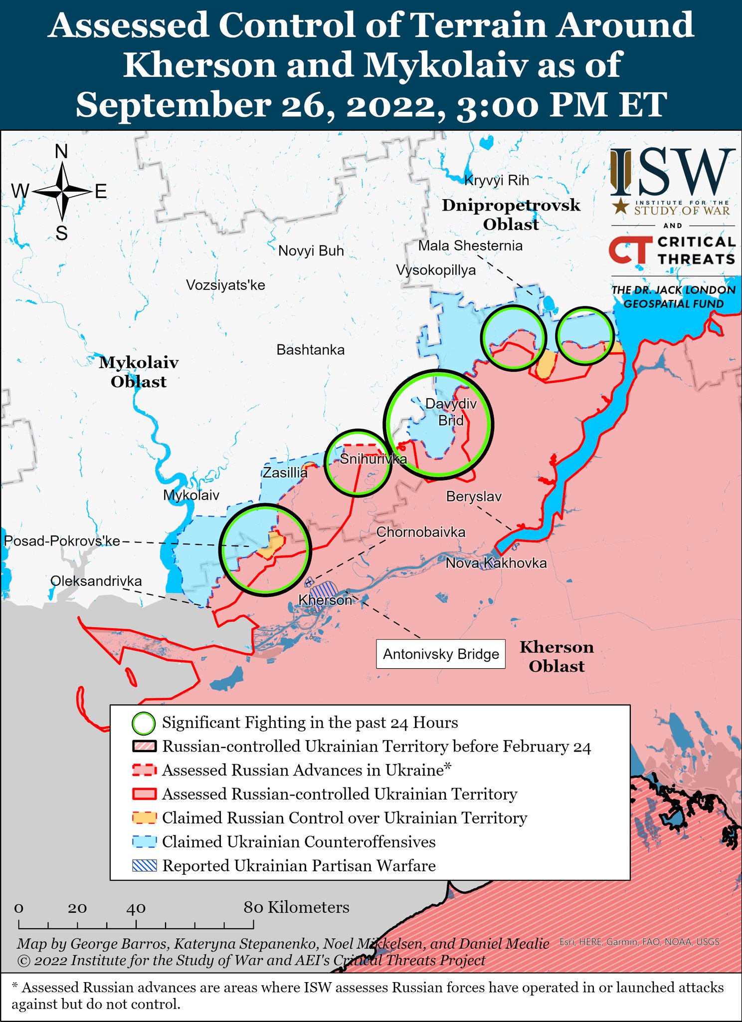 По данным Института изучения войны, 25 сентября украинские силы, вероятно, захватили Малиевку Харьковской области (находится в 25 км к северо-западу от Лимана).