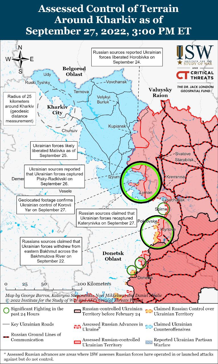 ВСУ медленно продвигаются как минимум по двум направлениям к востоку от рек Оскол и Северский Донец, где группировались украинские силы после предыдущего наступления в начале месяца.
