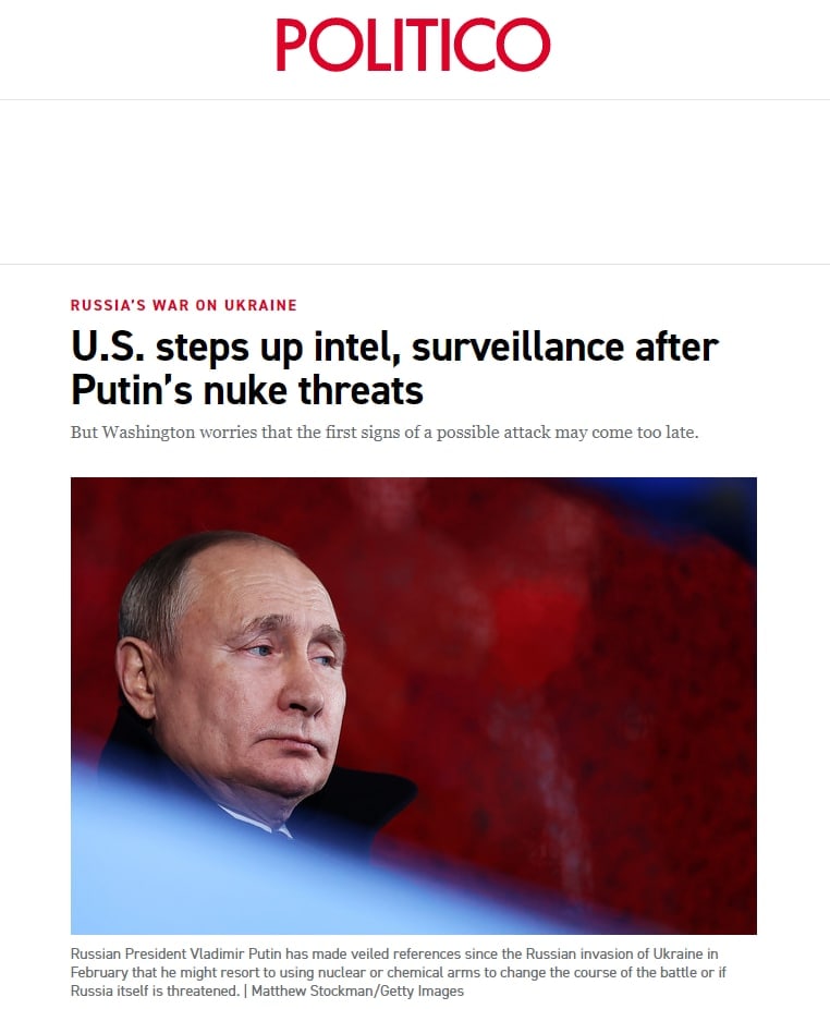 09.31 В США опасаются, что не смогут предугадать момент, когда Путин решится "совершить немыслимое" - то есть использовать ядерное оружие, пишет Politico.