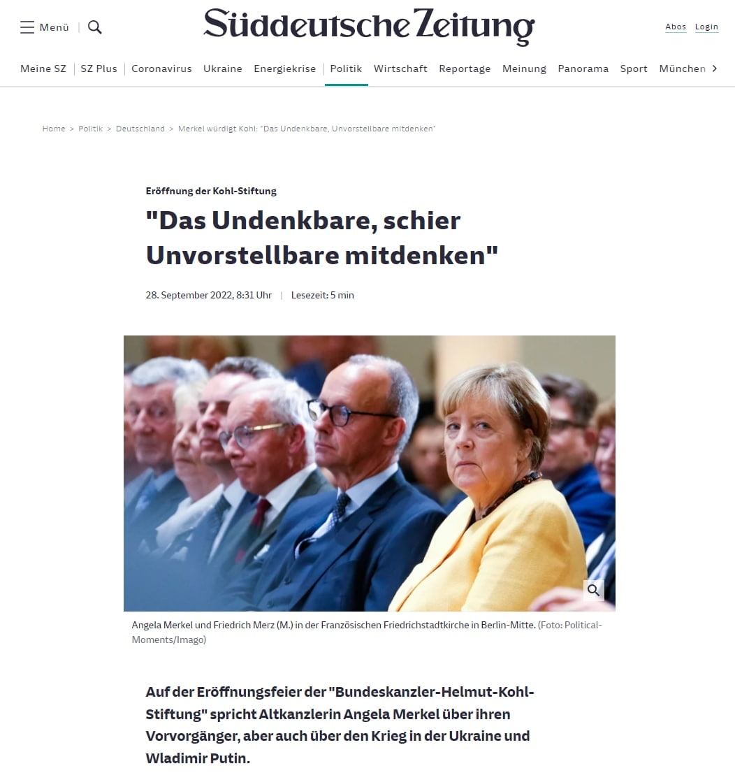 "Относиться к словам серьезно, не отмахиваться от них с самого начала, мол, это всего лишь блеф, но относиться к ним серьезно, это ни в коем случае не признак слабости или умиротворения, а признак политической мудрости", - сказала она на церемонии открытия Фонда федерального канцлера Гельмута Коля.