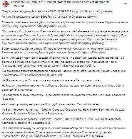 28 сентября в Украине идет уже 217-й день войны с Россией.