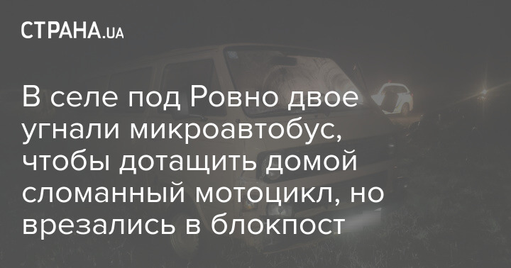 В Ровенской области двое молодых людей украли старый микроавтобус, чтобы довезти домой сломанный мотоцикл, и въехали на нем в бетонные блоки на блокпосте.
