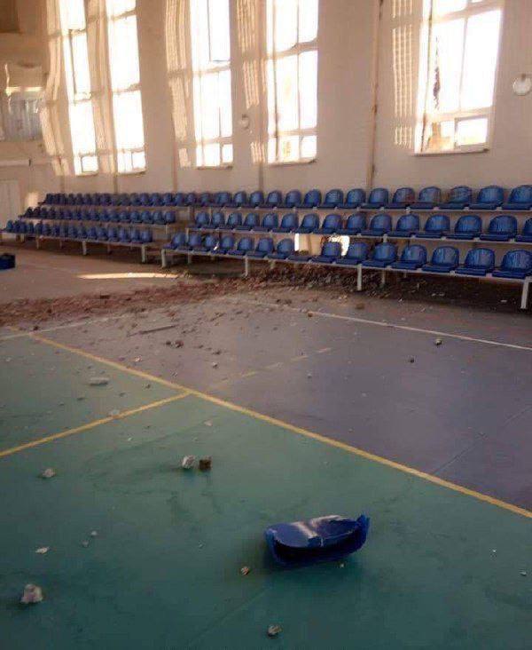 В результате обстрела повреждены несколько помещений. Больше всего пострадал спортивный зал. В здании учебного заведения выбиты стекла в окнах, в некоторых проемах окна вынесены полностью.