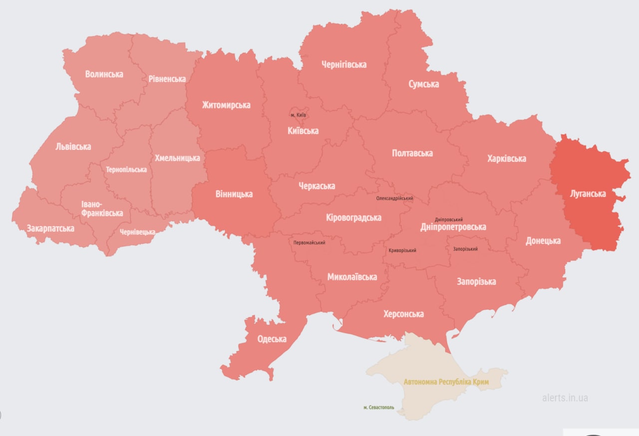 08:55 Снова вся территория Украины (кроме Крыма) в зоне воздушной тревоги.