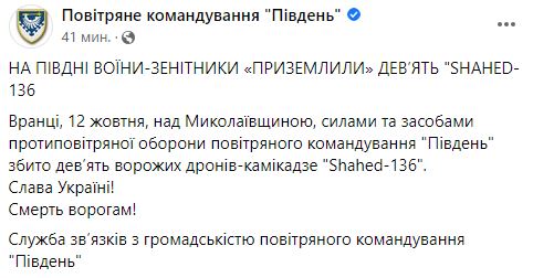08.37 Утром над Николаевской областью были сбиты девять дронов-камикадзе иранского производства.