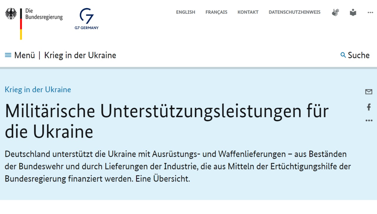На данный момент военная помощь ФРГ Украине оценивается в $1,5 млрд.