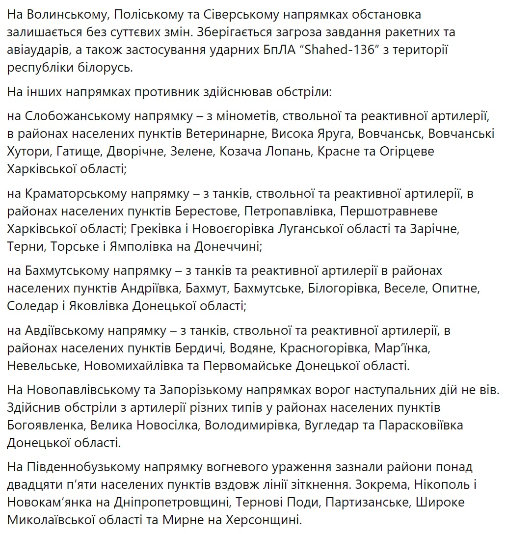 1. Противник наступает в Бахмутском и Авдеевском направлениях.
