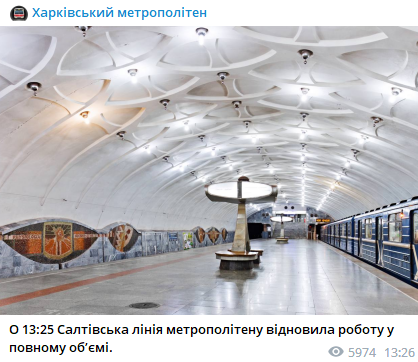 Однако около 13:25 и Салтовская линия метрополитена возобновила работу в полном объеме.