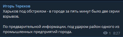По предварительной информации, под ударом район одного из промышленных предприятий города.