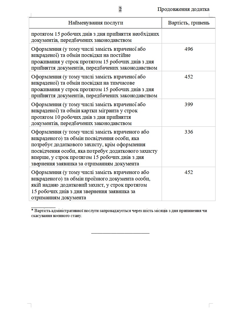 - Оформление и обмен вида на временное проживание - с 352 грн до 452 грн.