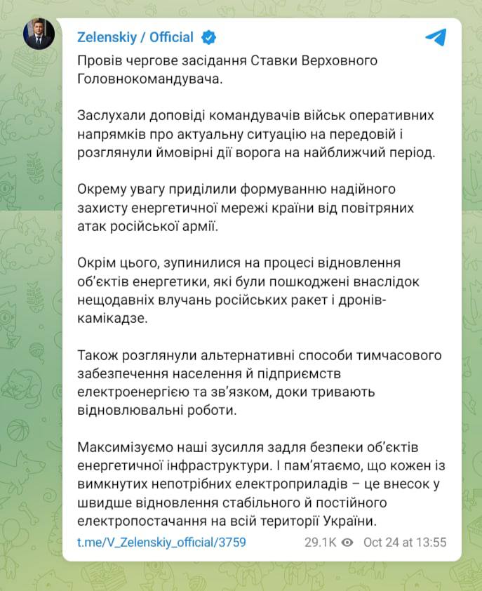 07:17 Сводка украинского Генштаба на утро 24 октября.
