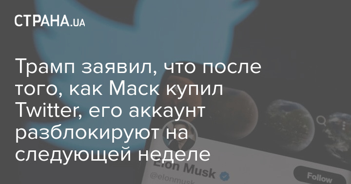 "Поздравляю Илона Маска с приобретением Twitter.Мне сообщили, что моя учетная запись будет восстановлена в понедельник, - посмотрим", - цитирует Трампа его пресс-служба.