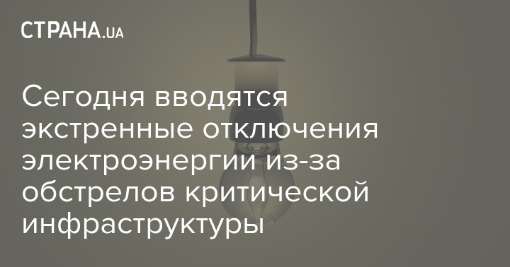 В понедельник, 31 октября, из-за обстрелов критической инфраструктуры вводятся экстренные отключения электроэнергии.