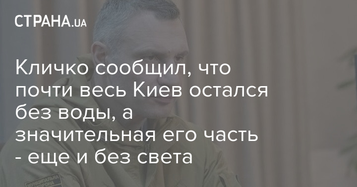 Кличко сообщил, что почти весь Киев остался без воды, а значительная его часть - еще и без света