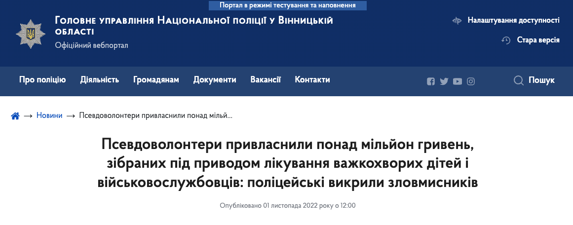 Аферисты 30 и 62 лет из Могилев-Подольского района разместили в социальной сети объявление от имени благотворительного фонда о сборе средств на лечение украинских военных, тяжелобольных детей и нужды ВСУ.