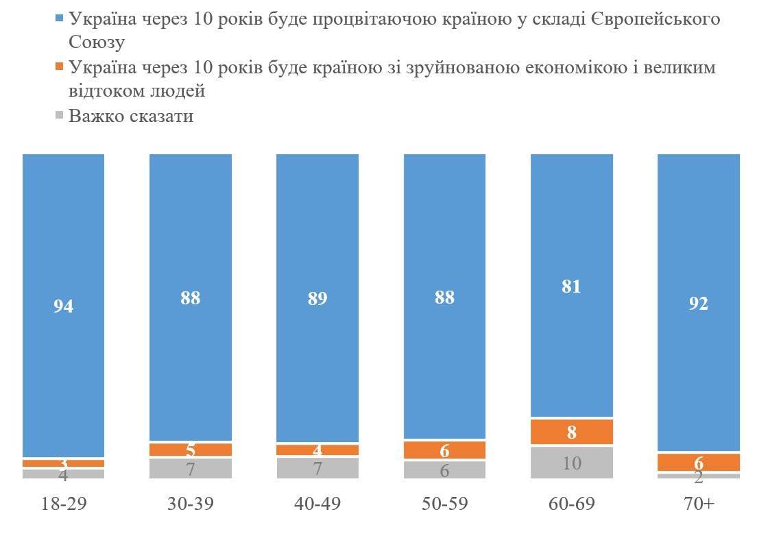 88% украинцев считают, что через десять лет Украина будет преуспевающей страной в составе ЕС.