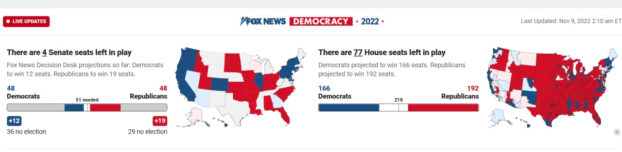 Напомним, по экзитполам республиканцы получают большинство в обеих палатах Конгресса.
