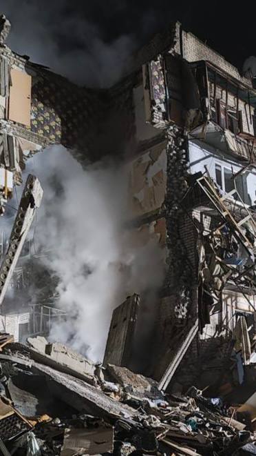 По его словам, одна из ракет попала в пятиэтажку, разрушены с 5 по 1 этаж.
