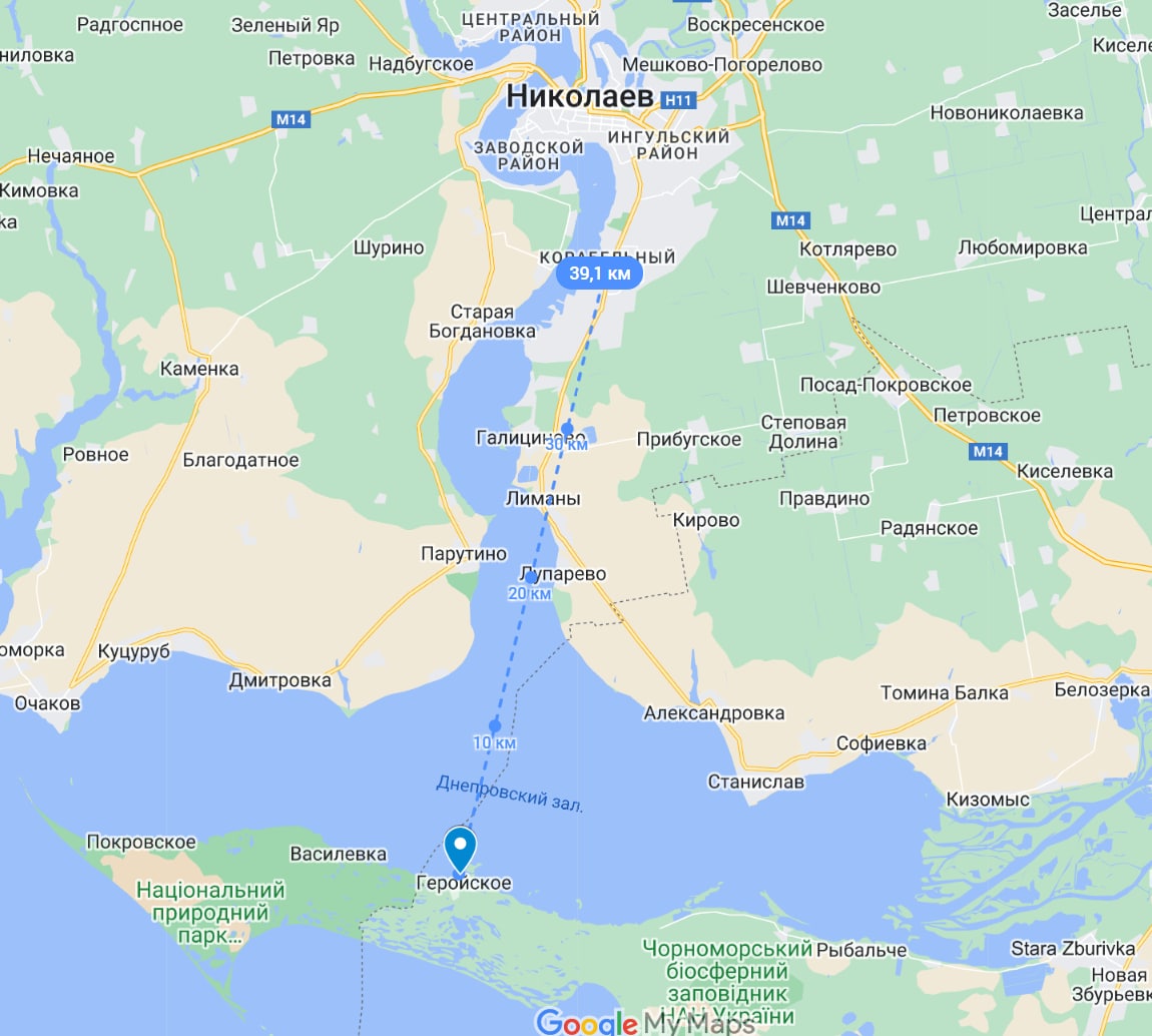 Отметим, что от Кинбурнского полуострова до ближайшего к нему Корабельного района Николаева менее 40 километров. Это примерно то же расстояние, с которого шли обстрелы города со стороны Херсона.