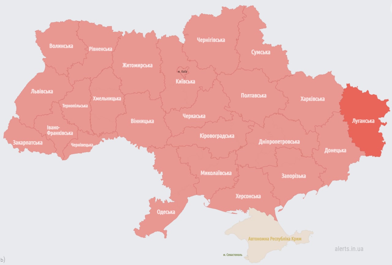 09.18 Вся Украина, кроме Крымского полуострова, находится в зоне воздушной тревоги.