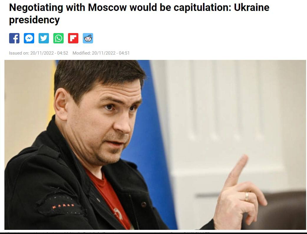 19:30 Советник главы Офиса президента Михаил Подоляк у себя в твиттере дал своё объяснение, почему Россия бьет по инфраструктуре Украины: