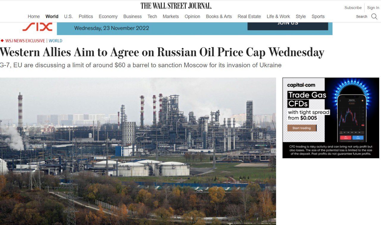 Отмечается, что потолок цен на нефть, вводимый западными странами, может быть выше обсуждаемого интервала в 40-60 долларов за баррель.