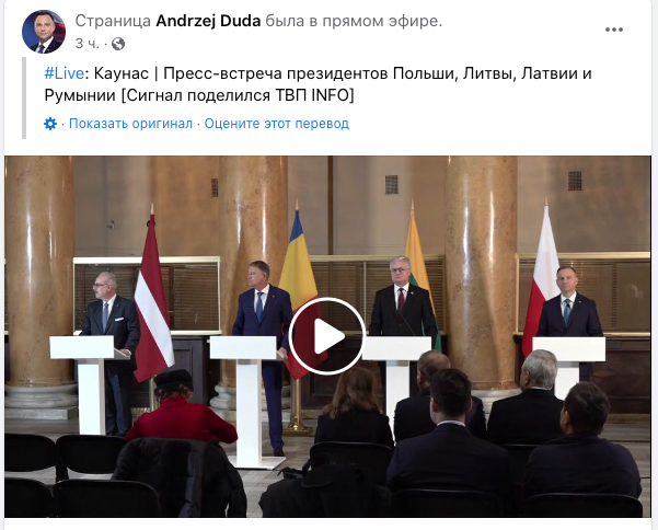 Об этом он заявил на встрече с президентами Литвы, Латвии и Румынии.