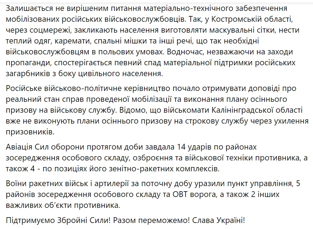 Украинский Генштаб публикует оперативную информацию по российскому вторжению на утро 26 ноября, когда начались 276 сутки широкомасштабного вторжения РФ в Украину.